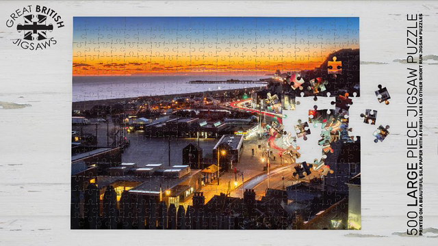 Beautiful jigsaw puzzle of a Hastings rush hour - light trails along the iconic Old Town - 500 pieces - printed on silk stock which give the jigsaw puzzle beautiful lustre and depth.